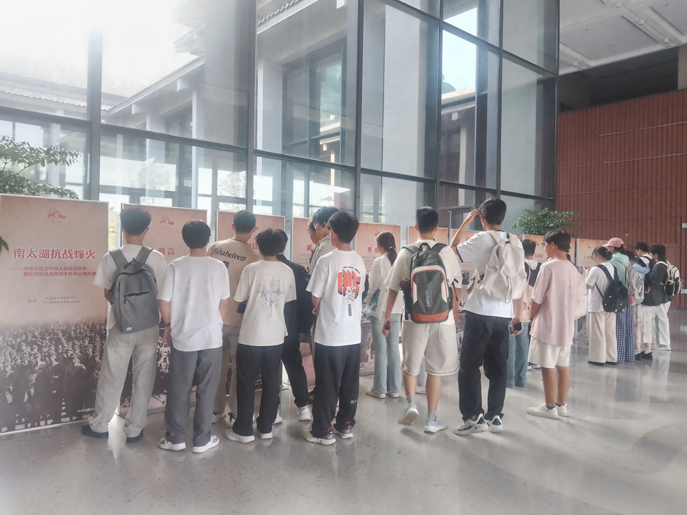 近日,湖州市委宣传部、湖州市委党史研究室主办的“南太湖抗战烽火——湖州市纪念中国人民抗日战争暨世界反法西斯战争胜利80周年图片展”在我校师生活动中心展出。9月24日,电子信息学院团委组织2025级新生团员参观了展览,带领同学们在影像中走近历史,感悟家国担当。