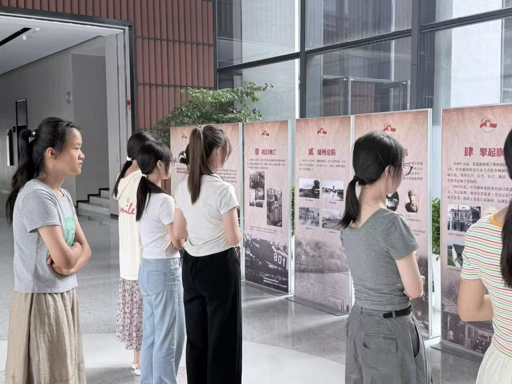 展览现场,同学们认真观看每一幅历史照片。从南太湖畔战士冲锋的身影到百姓支援前线的场景,80年前的烽火岁月在展板上一一呈现。参观过程中,同学们或驻足凝视,或低声交流,深刻感受到抗战历史的厚重与先辈精神的伟大。