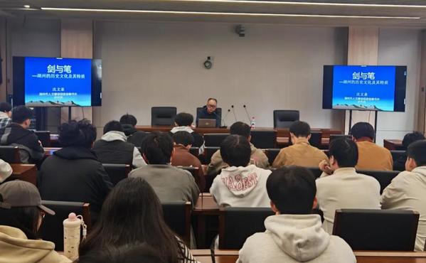 11月12日,我院邀请湖州市人文建设促进会秘书长、研究员沈文泉来院作“剑与笔——湖州的历史文化及其特质”专题讲座。学院70余名学生参加。