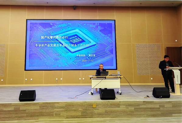 黄笑容阐述了半导体产业链结构、全球与中国半导体设备材料现状、行业未来趋势等。他还结合多年行业实践经验,系统解析了单晶硅制备工艺的关键环节,帮助师生直观理解半导体材料的核心价值与应用场景。作为专注于半导体单晶硅材料研发、生产与销售的国家高新技术企业,中晶科技的产业布局与技术实力也让师生深切感受到区域半导体产业的发展活力。