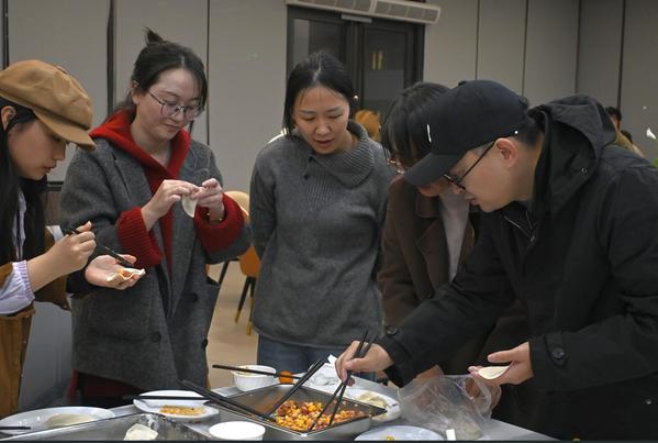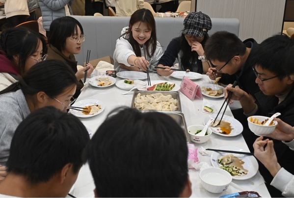 学院领导与在场学生亲切交流,询问大家的学习和生活状况,并鼓励同学们明确目标、克服困难,努力成长为合格的社会主义建设者和接班人。随后,师生分组协作,展开了一场热闹的包饺子大比拼。大家创意纷呈,包出的饺子形态各异,有月牙形、元宝形等,各具特色。随着热气腾腾的饺子端上餐桌,师生们共同品尝着自己的劳动成果,现场洋溢着温馨融洽的氛围。活动中,学院领导与老师还为同学们送上了精心准备的“冬日温暖大礼包”。