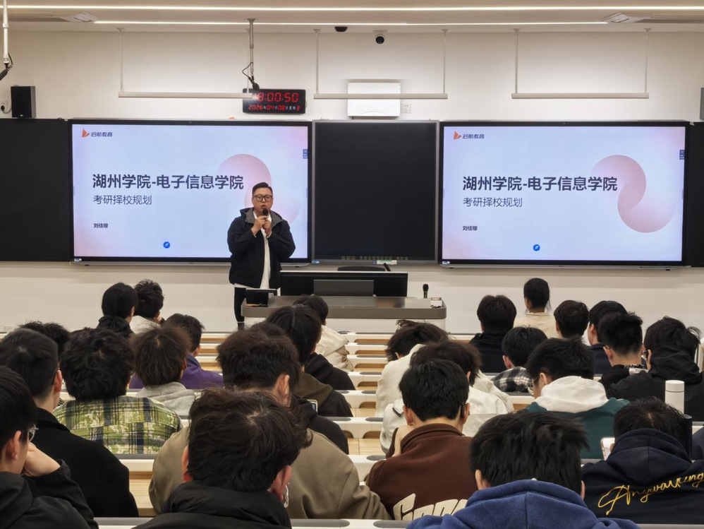 为帮助2027届考研学子明确备考方向、科学选择院校,4月8日晚,电子信息学院在 13-401 教室举办考研择校指导专题讲座,特邀考研全程规划专业讲师刘佳穆主讲。
