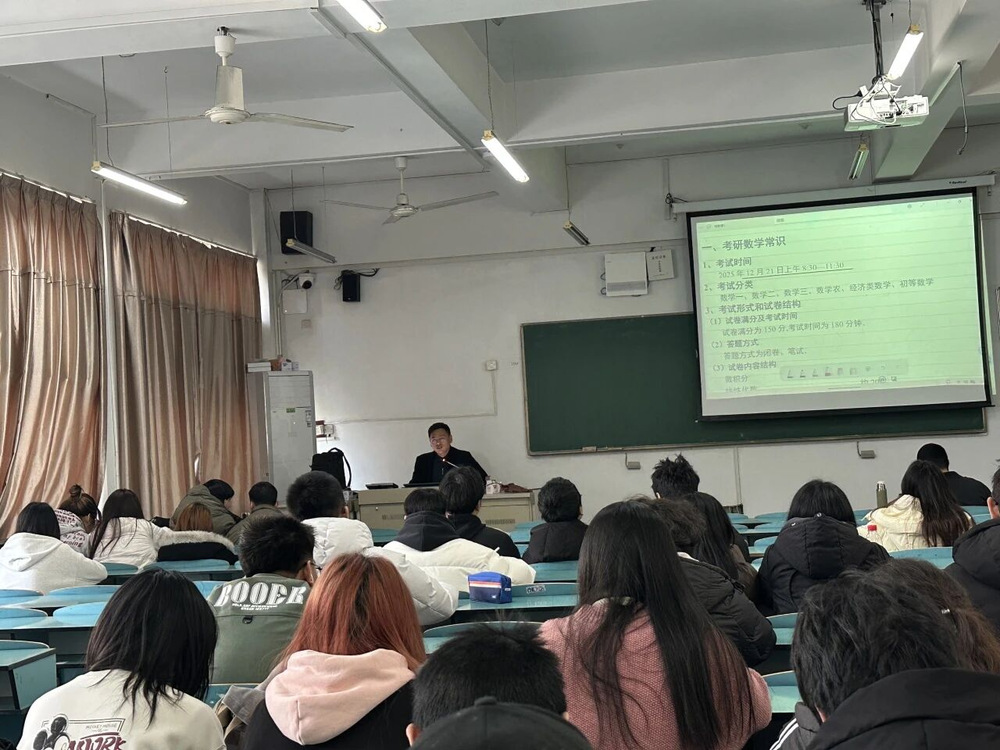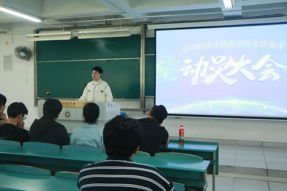 我院始终将考研工作作为提升人才培养质量、强化学风建设的重要工作,坚持系统谋划、精细部署、全员参与、有序推进。在考研工作启动阶段,学院开展全覆盖、深层次的考研意向调研。同时,学院积极整合校内外优质教育资源,打造系列化考研专题指导体系:针对公共课学习难点,开设考研高数、考研英语专项讲座,邀请资深教师结合电子信息专业学生学习特点,拆解高频考点、传授解题思路;围绕院校选择难题,举办考研择校专题讲座,深度解读电子信息领域院校排名、专业特色及历年报录数据,为学生搭建清晰的备考方向指引框架。